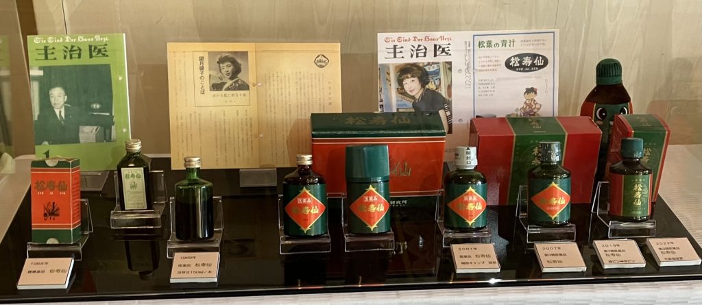 下の写真は松寿仙の歴史。ご愛飲の皆様はどのパッケージからご存じですか?