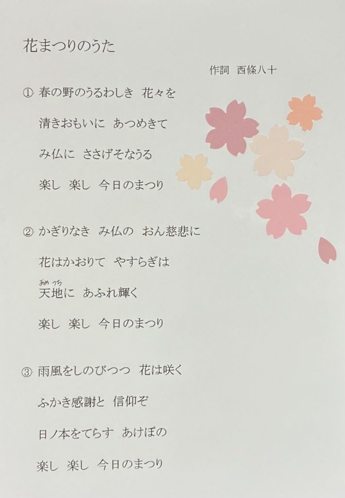 「花まつりのうた」(作詞 西條八十)の歌詞をご紹介くださった方もいらっしゃいました。